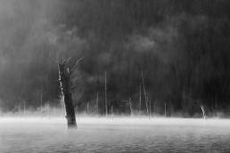 Neal McEwen | Foggy Morning on Quake Lake | $300 unframed, black & white, 24 X 16 inches